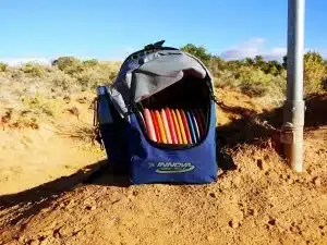 The Innova Discover Pack is an INCREDIBLY CHEAP backpack style frisbee golf bag. It is currently the least expensive backpack style bag on the market.
