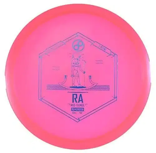 The RA is a great disc golf mid-range disc with a very flat top for comfortable grip and handling. Whether you throw backhand or forehand, the RA will feel great in your hand and will hold your line and slice through the air for precision distance before a steady, predictable end fade. Metal Flake C-Blend plastic is durable and long lasting as a preferred blend for mid-range discs.